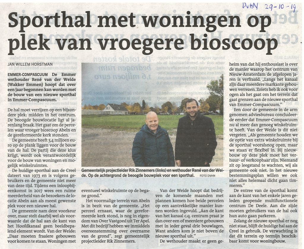 Bedrijven worden opgeroepen om met plannen te komen voor bouw sporthal, met winkelpanden aan de kanaalzijde!