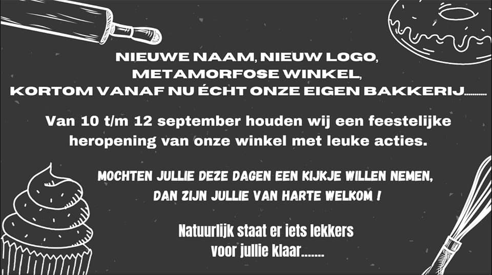Vanaf volgende week 10 september gaat Bakkerij Drenth verder onder een andere naam.