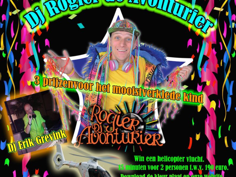 Dj Erik Grevink zorgt voor de carnavalskrakers en Rogier de Avonturier komt voor een entertainmentprogramma voor de de kids! Ook zijn er diverse prijzen te winnen.