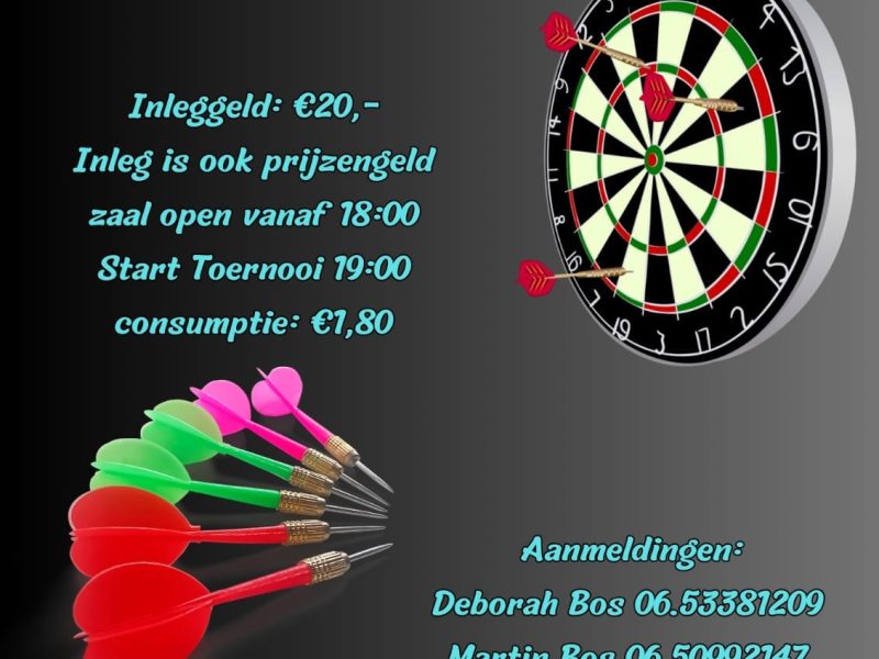 Buurtvereniging Ons Dorp organiseert een KoppelDartToernooi op zaterdag 13 juli 2024.