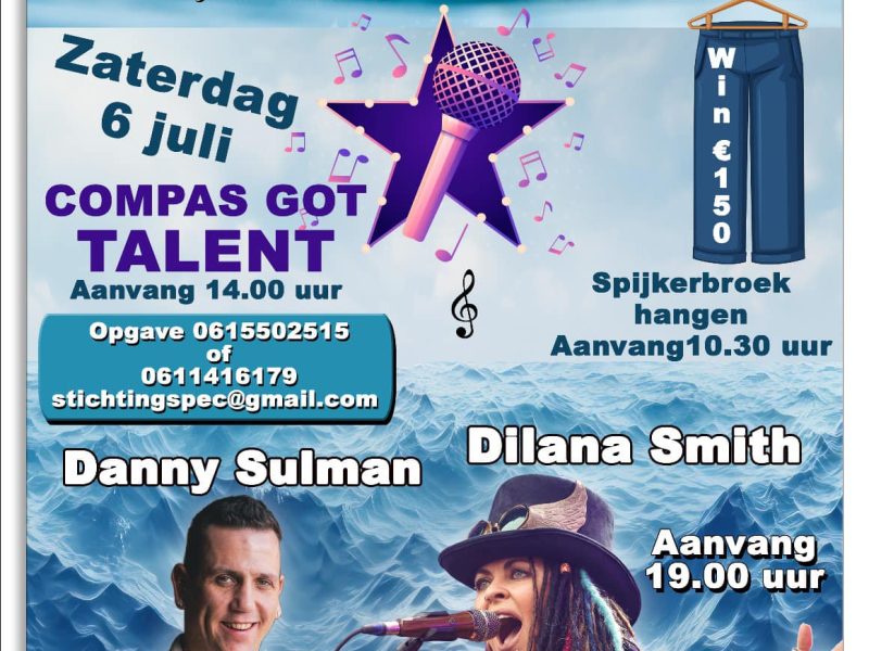 ’s Middags is er van 14:00 tot 17:00 uur “Compas Got Talent”, gepresenteerd door een hilarisch duo. Wederom zijn ook hier weer geldprijzen te winnen, 1e prijs € 150,-, 2e prijs € 100,- en 3e prijs € 50,- .