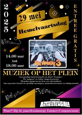 Op Hemelvaartsdag, 29 mei 2025, kun je naar ‘Muziek op het plein’.