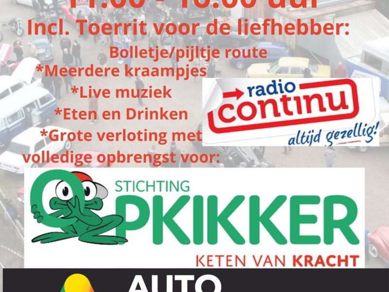 Er wordt een toerrit georganiseerd en er zijn allemaal leuke activiteiten en muziek op het terrein van de Autovakmeester.