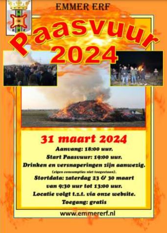 Op zondag 31 maart 2024 organiseert buurtvereniging Emmer Erf een paasvuur.