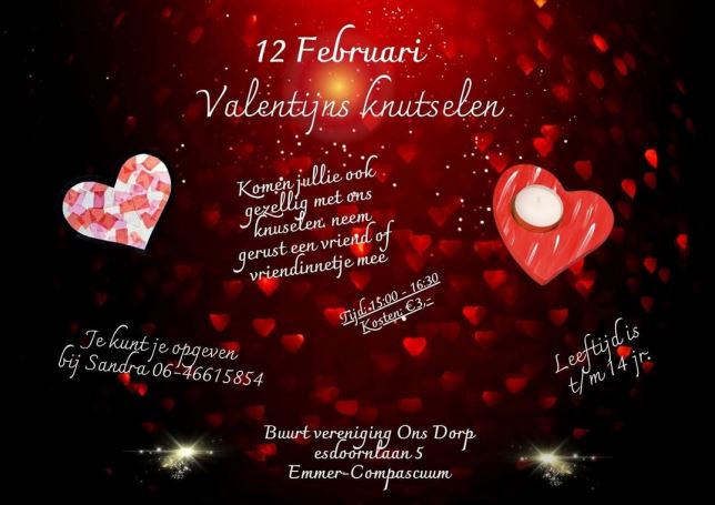 Valentijnsknutselen voor jeugd t/m 14 jaar.