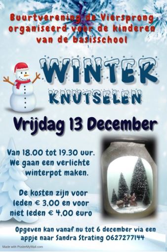 Op vrijdag 13 december organiseert De Viersprong ‘Winterknutselen’ voor kinderen (leeftijd basisschool).